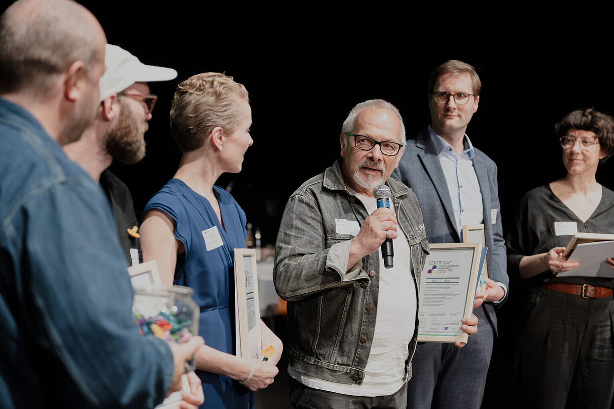 Am 04. Juli 2024 wurden die neuen „Transformerys“ im EinTanzHaus Mannheim gefeiert. Verliehen wurden Zertifikate an 44 neue Absolventen und Absolventinnen der bundesweiten Weiterbildung „Transformationsmanager:in Nachhaltige Kultur“, die in dieser Runde von der IHK Rhein-Neckar zertifiziert wurden. Mit dabei unser bayernkreativ-Kollege Florian Heilmayr. Herzlichen Glückwunsch! Florian war begeistert von der viermonatigen Weiterbildung, die ihm auf mehreren Ebenen geholfen hat, sich als Lotse für die nachhaltige Transformation im Kulturbereich vorzubereiten.