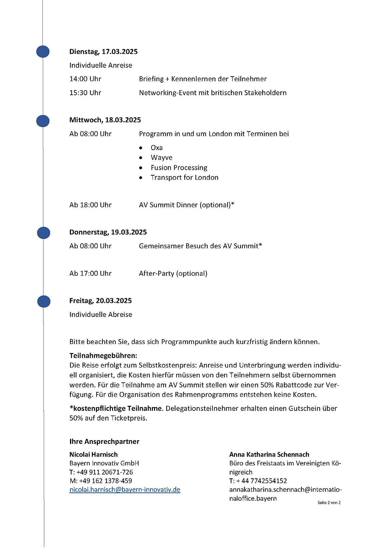Die Reise erfolgt zum Selbstkostenpreis: Anreise und Unterbringung werden individuell organisiert, die Kosten hierfür müssen von den Teilnehmern selbst übernommen werden. Für die Teilnahme am AV Summit stellen wir einen 50% Rabbatcode zur Verfügung. Für die Organisation des Rahmenprogramms entstehen keine Kosten.