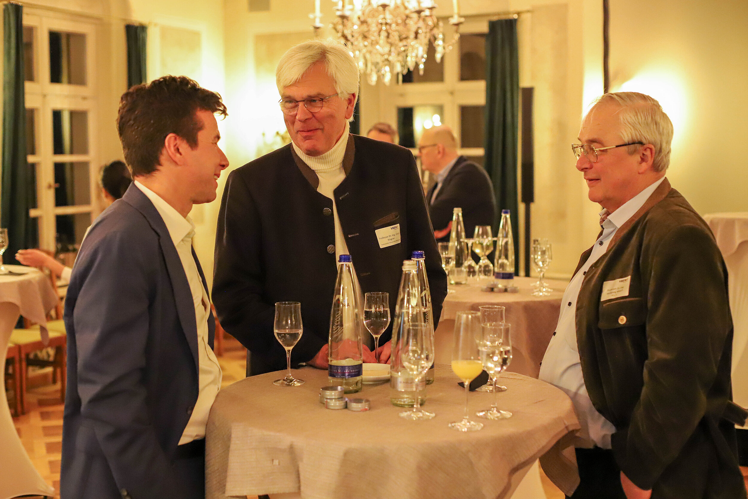 Prof. Dr. Wolfgang Mauch, spokesperson for the Energy Technology Cluster (far right), took the opportunity to network. In conversation withDr.-Ing. Serafin von Roon - FfE(far left) and Prof. Dr. Ulrich Wagner (center); photo credits: VBEW/Marina Kuhn