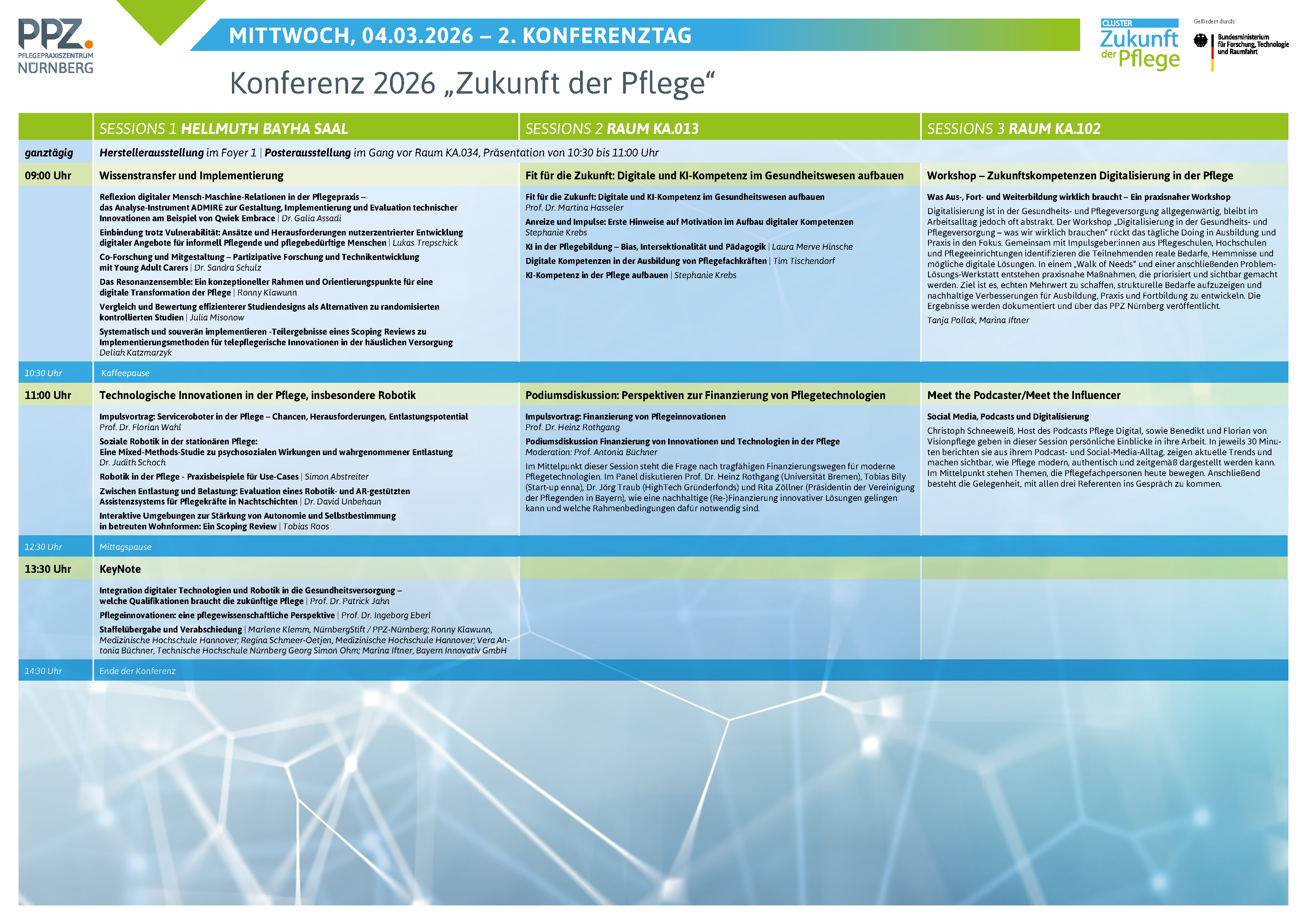 The 8th conference of the Future of Care Cluster focuses on the topic of "Digital transformation: smart, secure, sovereign!" and sees these challenges as a shared mission: How can the digital transformation in care be shaped in a sustainable, responsible and innovative way? What technological, organizational and ethical impulses are needed to make care facilities more resilient, humane and efficient? How can nursing practice itself become an active co-creator of this change?