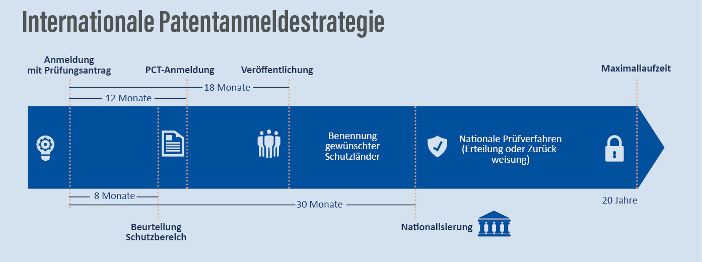 - Priorität: Innerhalb von 12 Monaten nach der ersten Anmeldung kann Priorität für weitere Anmeldungen in anderen Ländern beansprucht werden.