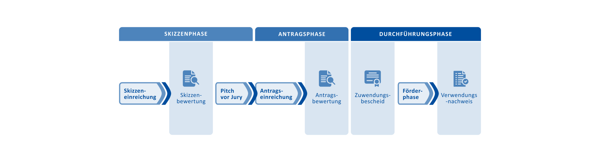 Die für eine Förderung geeigneten Projektideen werden auf Grundlage der Bewertung und Priorisierung vom Projektträger und dem Gutachtergremium ausgewählt. Das Gutachtergremium ist zur Vertraulichkeit verpflichtet. Anschließend werden die ausgewählten Projektteams zu einer Kurzpräsentation des Vorhabens eingeladen. Das Auswahlergebnis wird dem Projektleiter bzw. dem Projektkoordinator schriftlich mitgeteilt. Bis zu diesem Zeitpunkt wird über das Bewertungsverfahren keine Auskunft erteilt. Ein Rechtsanspruch auf Rückgabe einer eingereichten Projektskizze besteht nicht. Für die zweite Verfahrensstufe werden alle Projekte, deren Projektskizze positiv bewertet wurde, aufgefordert, einen Förderantrag zu stellen. Nicht zur Antragstellung aufgeforderte Projektskizzen werden nicht weiterverfolgt. Eine erneute Einreichung zu einem späteren Zeitpunkt ist grundsätzlich möglich.