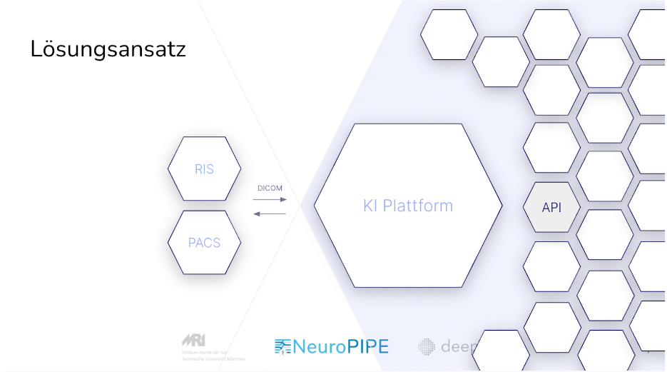 Die deepc GmbH und das Institut für Neuroradiologie am TUM Klinikum Rechts der Isar haben mit NeuroPIPE eine zukunftsweisende Software-Infrastruktur entwickelt, die Künstliche Intelligenz nahtlos in den klinischen Arbeitsalltag integriert. Durch die intelligente Anbindung an bestehende Systeme wie PACS und RIS ermöglicht NeuroPIPE die automatisierte Nutzung und Orchestrierung verschiedenster KI-Modelle – ohne individuelle Systemanpassungen.